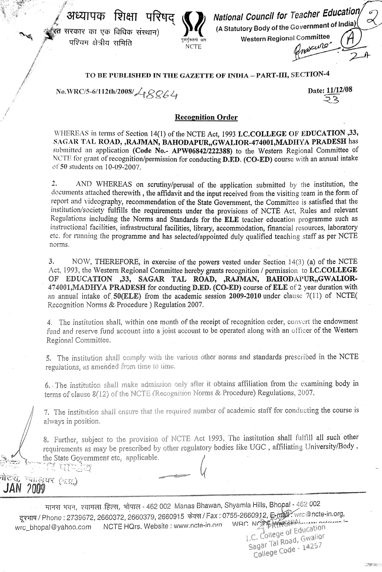 Copyright 2008-09 IC College of Education, Gwalior. All Rights Reserved.